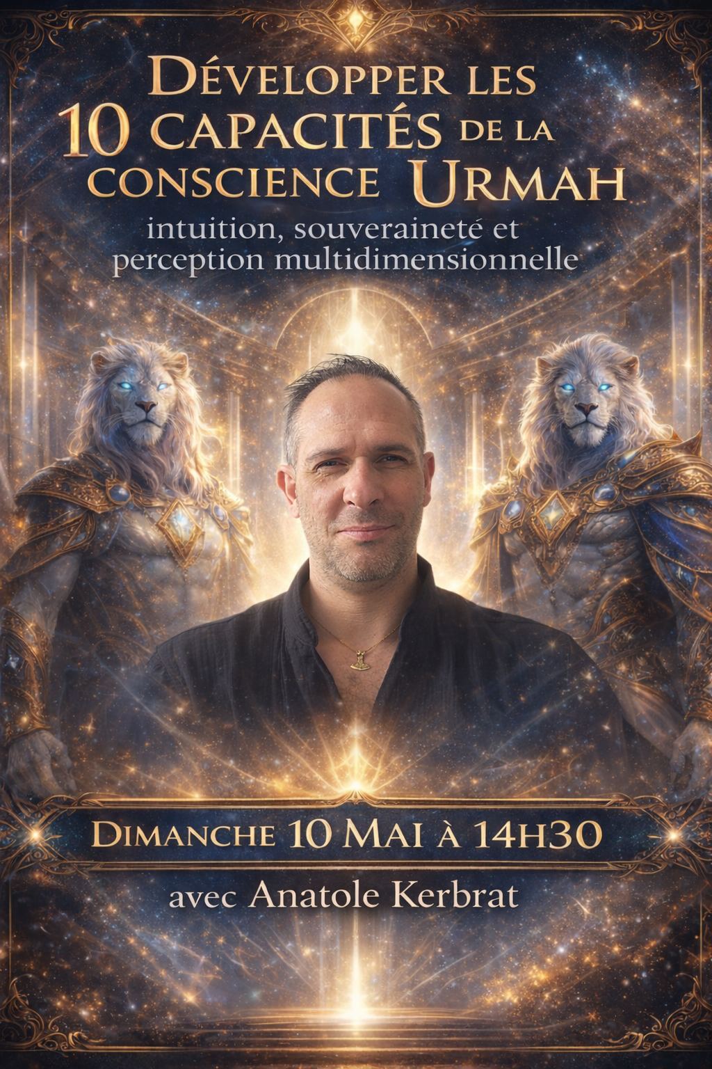 Développer les 10 capacités de la conscience Urmah : intuition, souveraineté et perception multidimensionnelle 📅 INFORMATIONS En direct sur Zoom avec Anatole Kerbrat Date de l'atelier : Dimanche 10 Mai à 14h30 Durée : 2h Replay inclus Tarif : 47 €